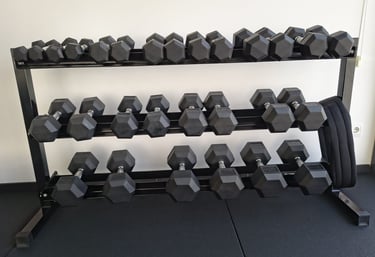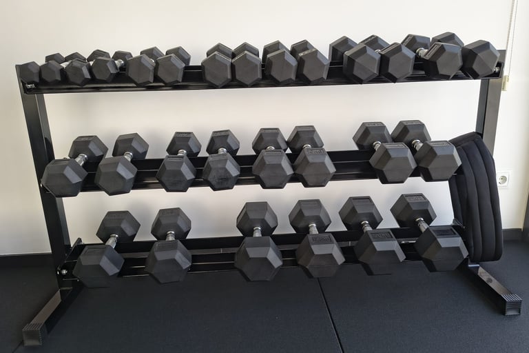 Bancs i racks ajustables – Permeten personalitzar cada exercici segons la teva alçada, força i objectius. Amb ells es poden fer des de press de banca fins a sentadilles, treballant de manera segura i adaptada a cada persona.